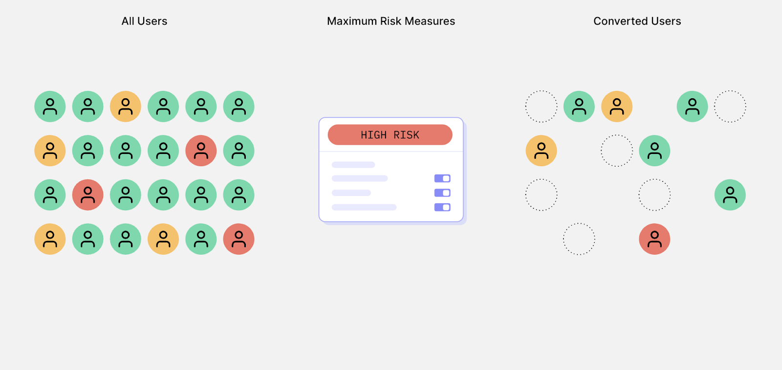 While most users that go through your flow are likely legitimate, you can’t assume all of them are. But if you optimize too heavily for risk deterrence by making your onboarding flows long and hard to navigate, you may scare away most of your good users.